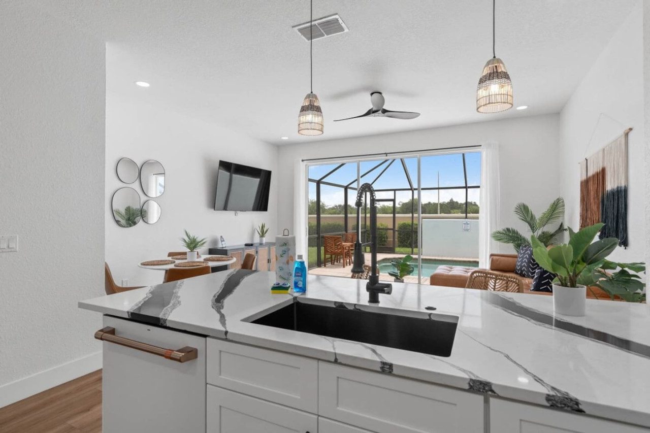 This NEWLY renovated and beautifully decorated home-away-from-home is perfectly located 5 miles from Walt Disney World® Resort. Relax in your private heated plunge pool and make yourself at home in this upscale townhouse. With hardwood floors throughout the entire townhouse and a modern flare, this 3-bedroom, 3-bathroom home that sleeps up to a family of 8 will feel like an oasis.