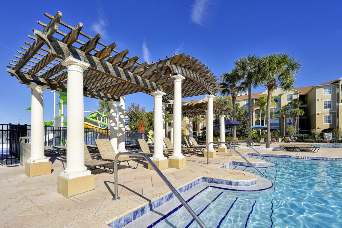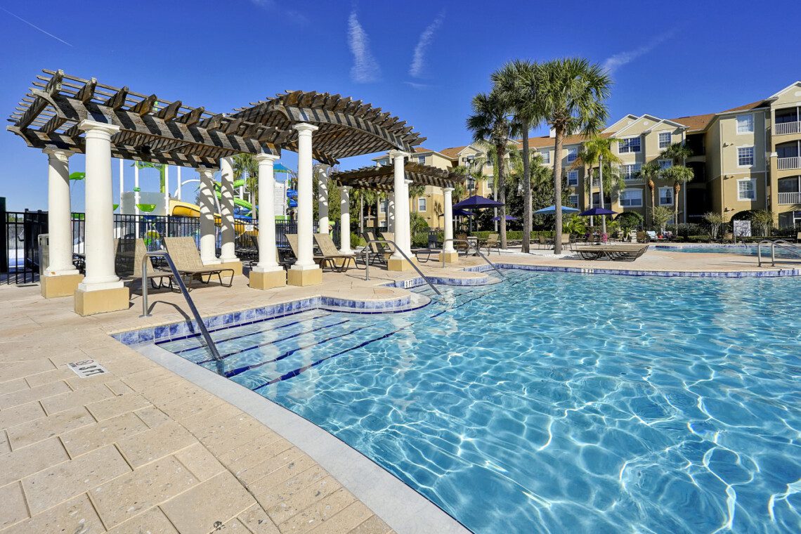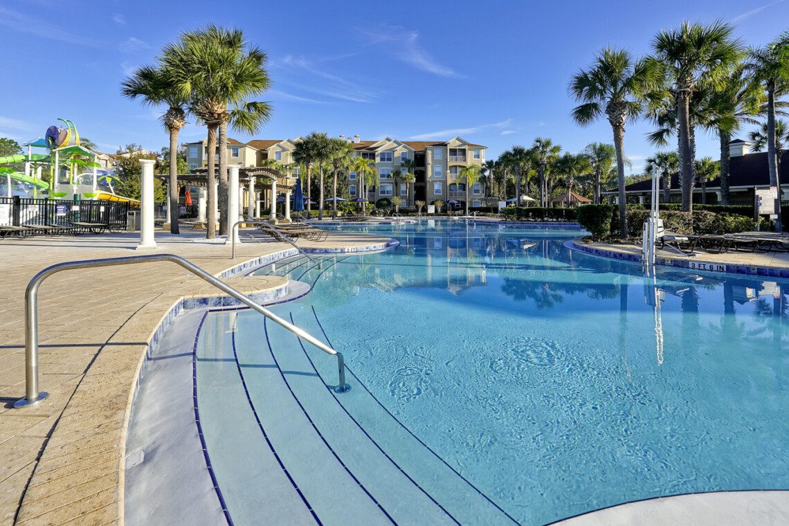 Not only is this unit located near the pool, but it is also an end unit which offers added privacy. With being just a few minutes away by foot from the resort’s water park and Clubhouse, you will find endless entertainment for the whole family to enjoy. Here, you will find a large pool, jacuzzi, water slides, arcade, fitness center, basketball & volleyball courts, kid’s playground and much more. There are a wide variety of delicious restaurants to try out nearby.